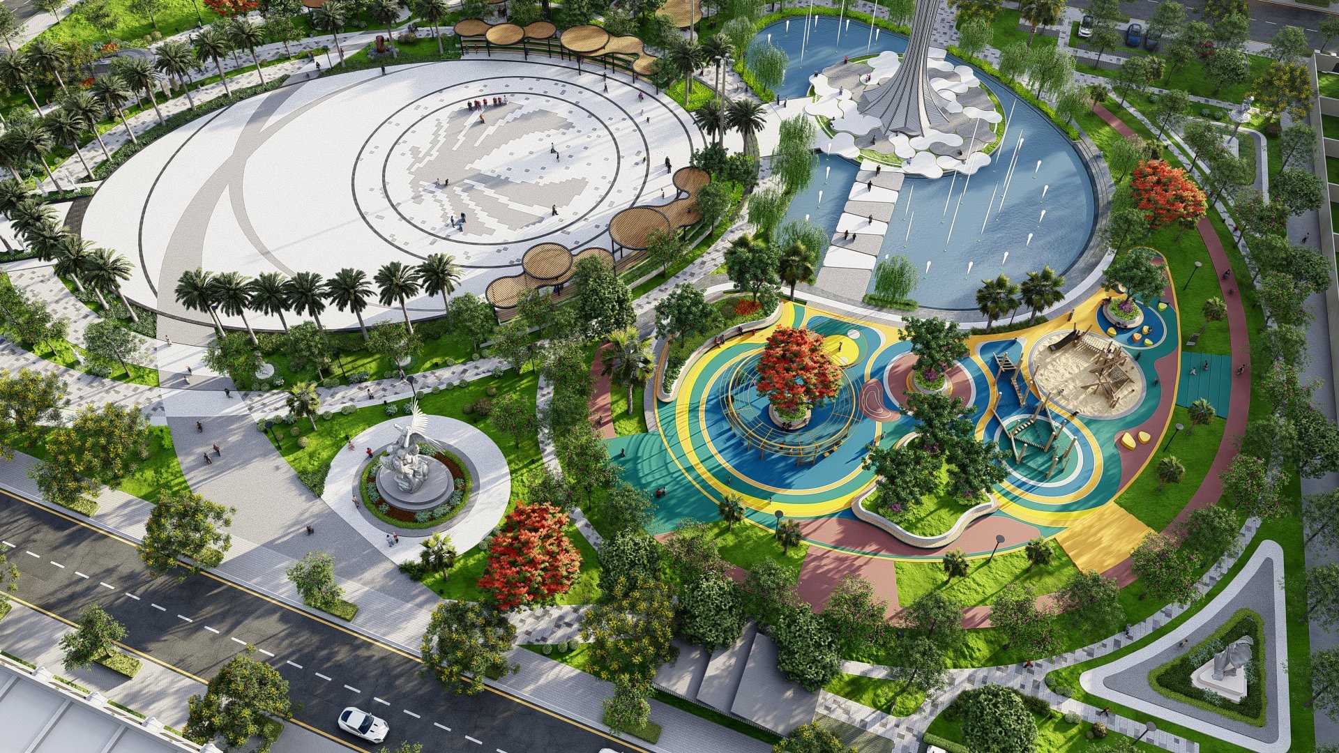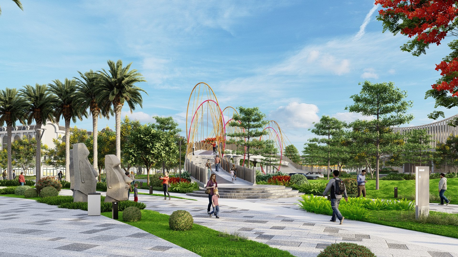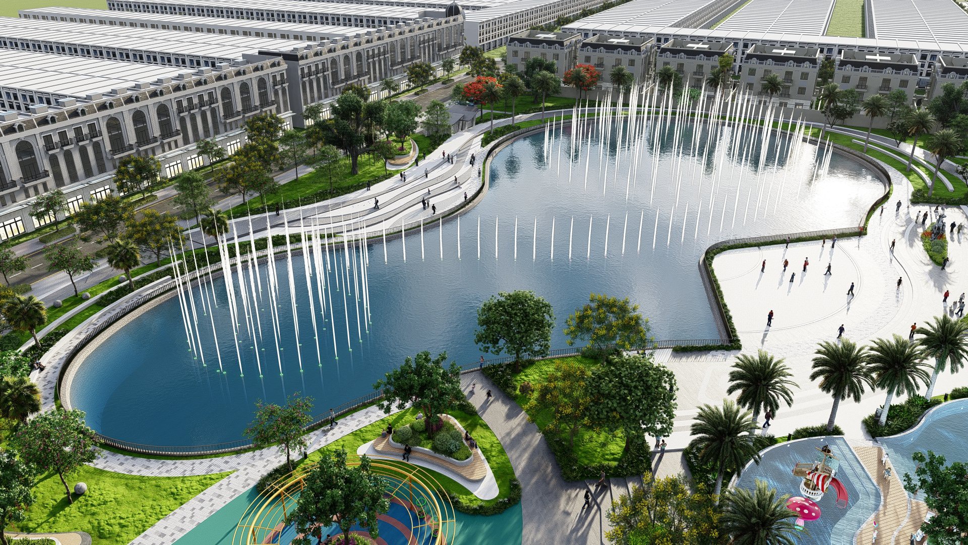 Bên cạnh các phân khu nhà ở, dự án còn dành diện tích lớn cho công viên trung tâm và hệ thống tiện ích nội khu, bao gồm quảng trường, sân thể thao, lối dạo bộ, khu vui chơi, picnic ngoài trời. Đây là “lá phổi xanh” nuôi dưỡng chất lượng sống toàn khu, đồng thời tạo nên sức hút dài hạn cho nhà đầu tư.